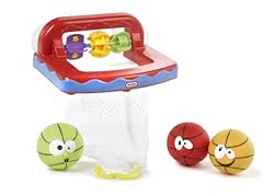 Little Tikes Little Champs Bathketball Slam dunks make a big splash with this cool tub time basketball set! Suction cups hold the rim securely to the wall or side of the tub. Little Champs Bathketball comes with 3 colored, water-squirting balls, each with a different fun face. Make a basket and watch the spinners twirl. Cinch the net closed for handle storage and put-and-take play.